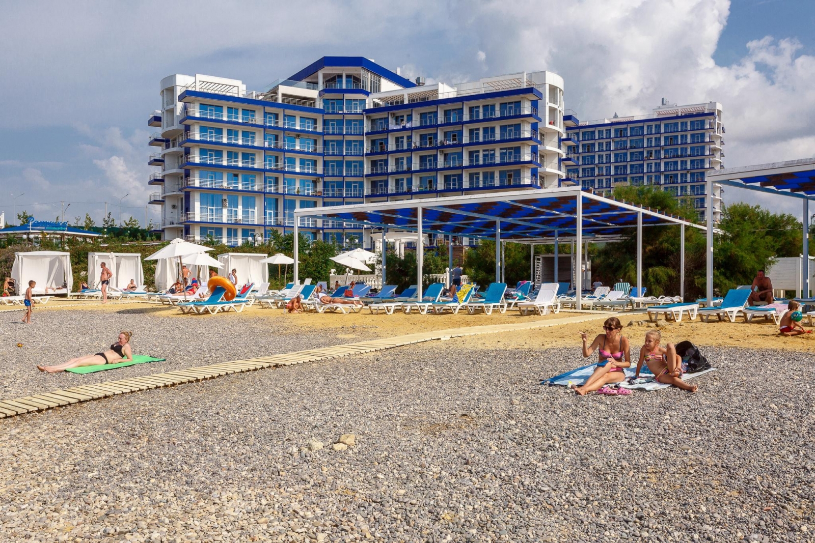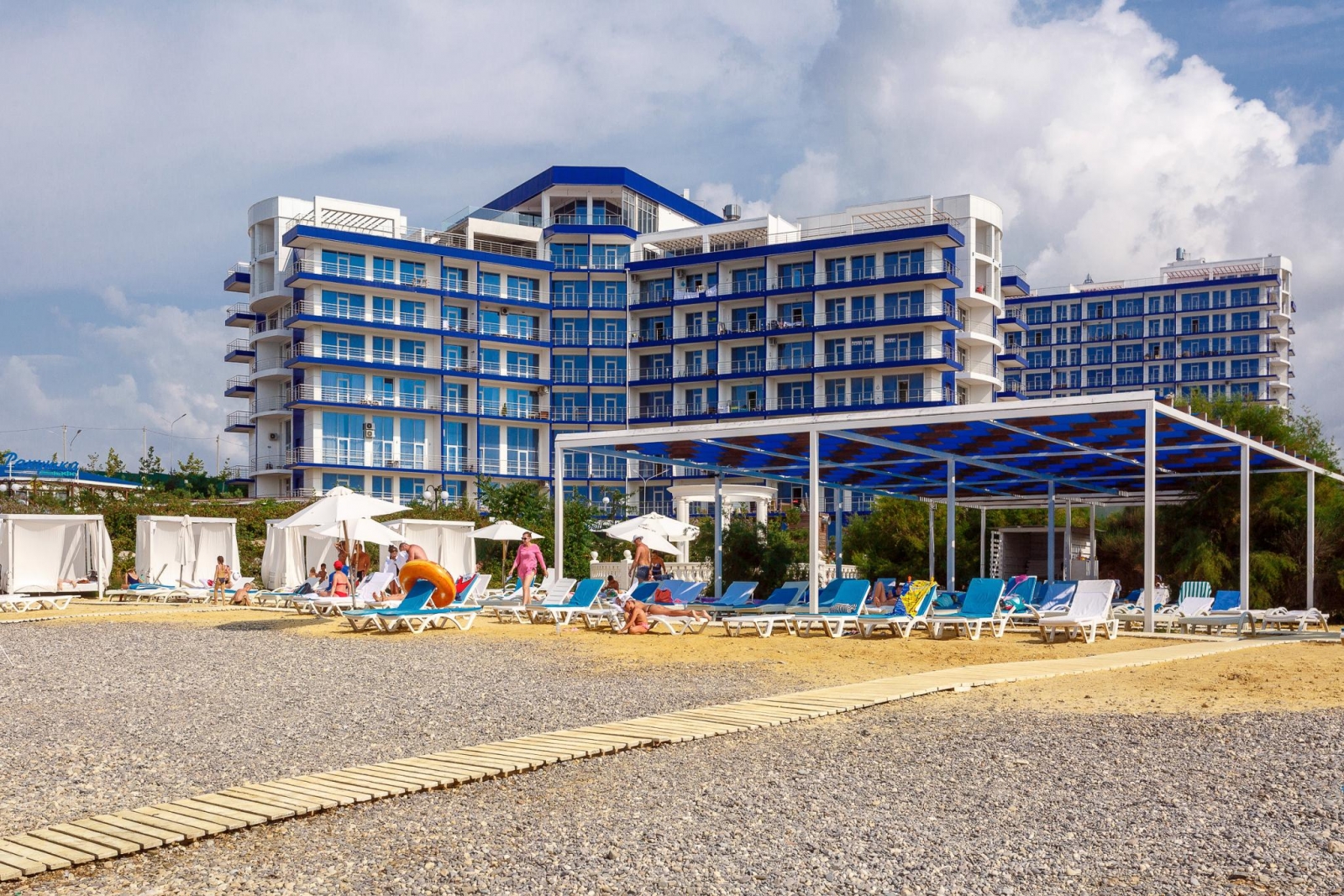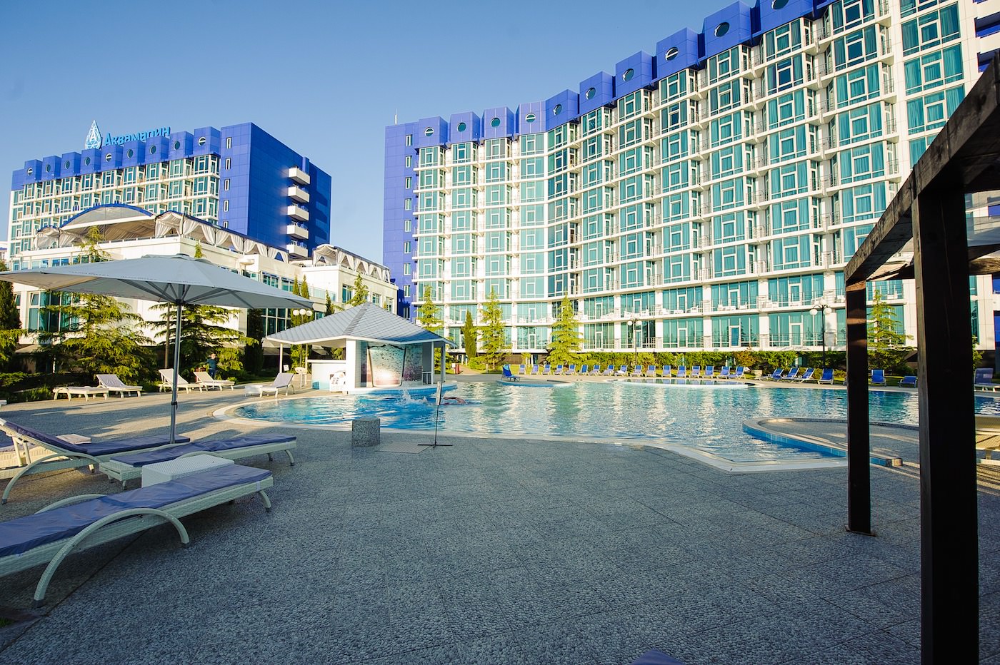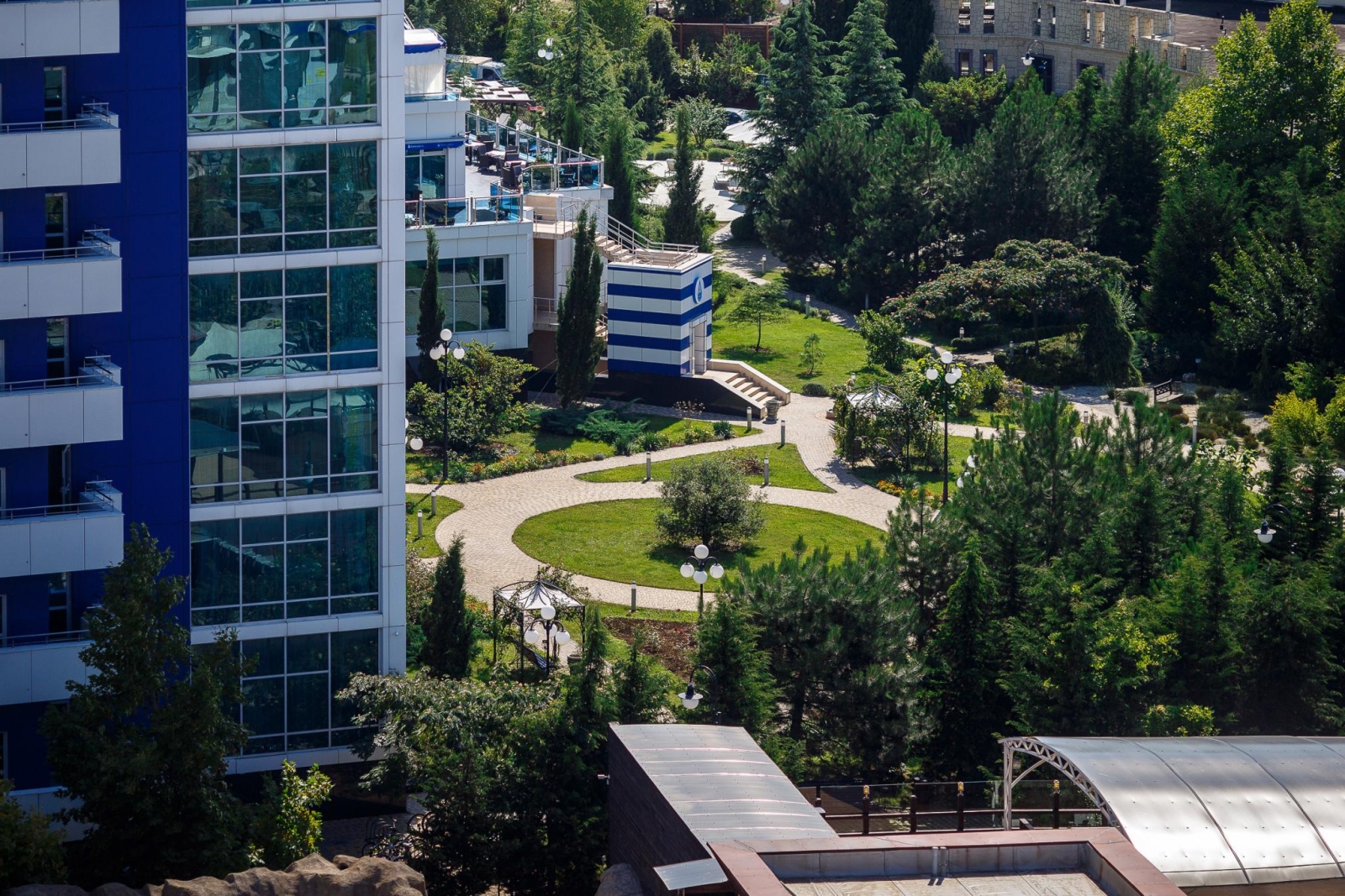 Апартаменты «Апарт-Сити Ирида» расположены в Гагаринском районе города Севастополя в шаговой доступности от Парка Победы, между бухтами Стрелецкая и Круглая. В десяти минутах ходьбы находится красивая набережная с белоснежной балюстрадой, аквапарк «Зурбаган», много различных баров и кафе. В шаговой доступности сетевые магазины и остановки общественного транспорта. За двадцать минут можно доехать до центра и археологического заповедника «Херсонес Таврический» Автовокзал и железнодорожный вокзал находятся в десяти километрах от отеля, а до аэропорта Симферополя около двух часов пути. Гостиничный комплекс состоит из корпусов «Аквамарин» и «Аква Deluxe», где разместились комфортабельные стильные апартаменты. Отдыхающим предлагаются двухкомнатные и двухуровневые номера, часть из которых имеет панорамные окна с видом на море. Во всех апартаментах помимо современного мебельного гарнитура, кондиционеров, ЖК-телевизора, есть хорошо оборудованная кухня с посудомоечной, стиральной машиной и микроволновой печью, просторный санузел оснащен ванной и необходимыми банными принадлежностями. Организованное питание не предусмотрено, но на территории «Апарт-Сити Ирида» работают четыре основных ресторана и несколько баров, в том числе фитобар. В каждом корпусе в распоряжении постояльцев крытые бассейны с пресной и соленой водой, центр с широким комплексом услуг – несколько видов бань, сауны, хамам, джакузи, массажные кабинеты, также имеется открытый бассейн с зоной отдыха во внутреннем дворе. В корпусе «Аквамарин» оборудован тренажерный зал, а в «Аква Deluxe» - большой фитнес-комплекс, где регулярно проходят занятия по аэробике и другим видам фитнеса. Для гостей устраиваются кинопоказы, анимационные шоу. Кроме этого, отдыхающим доступны услуги прачечной, беспроводной интернет на всей территории, охраняемая автостоянка. Гостиничный комплекс обладает хорошими конгресс-возможностями, в корпусах есть технически оснащенный конференц-зал, несколько оборудованных переговорных комнат. Для детей организованы игровые площадки и комнаты, детский бассейн, работают воспитатели, по запросу предоставляется кроватка-манеж.